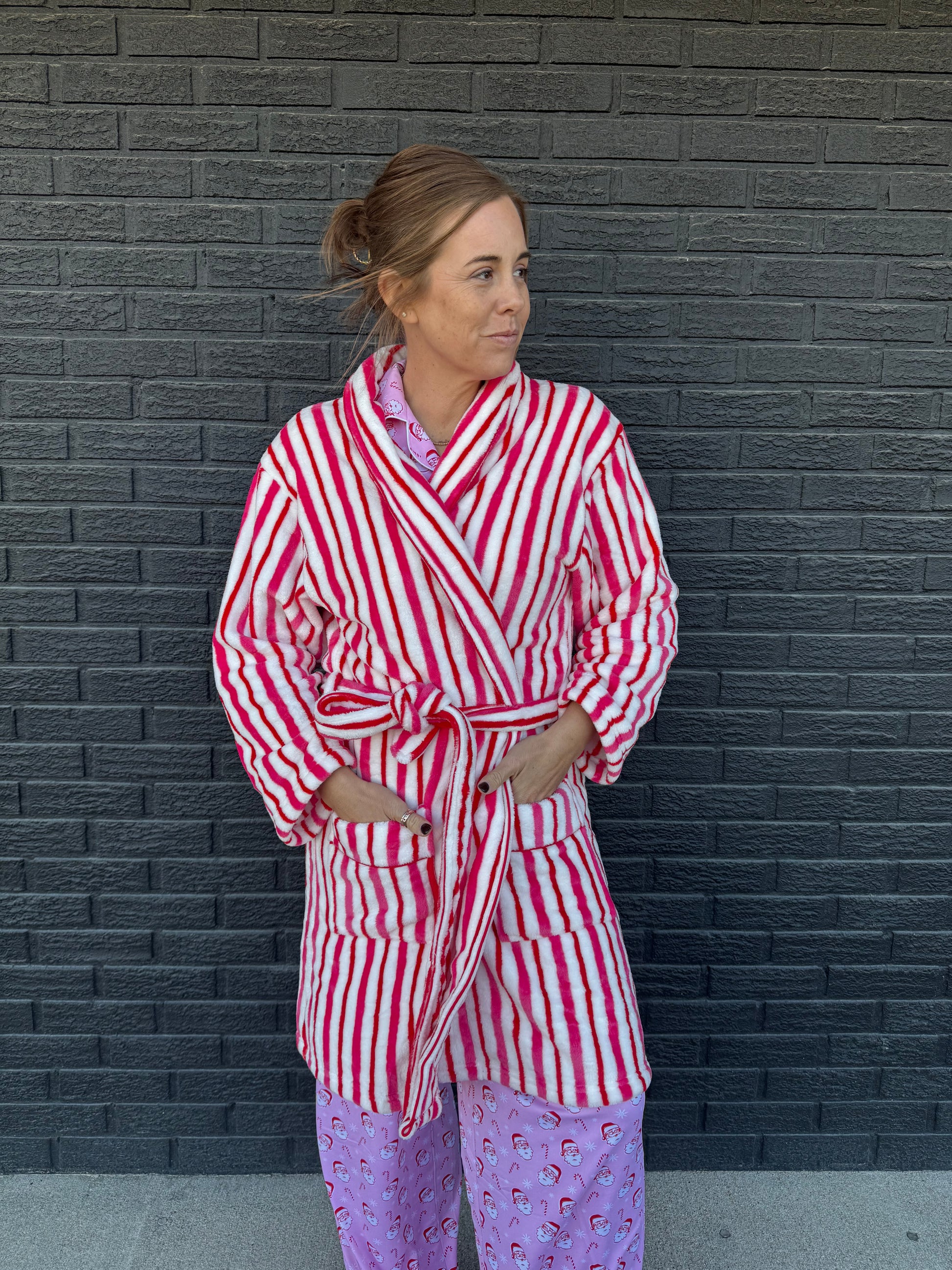Who doesn’t love a good soft robe? This thick plush candy stripe robe is so cute for this Christmas season. Perfect to throw over a pajama set and lounge around the house.