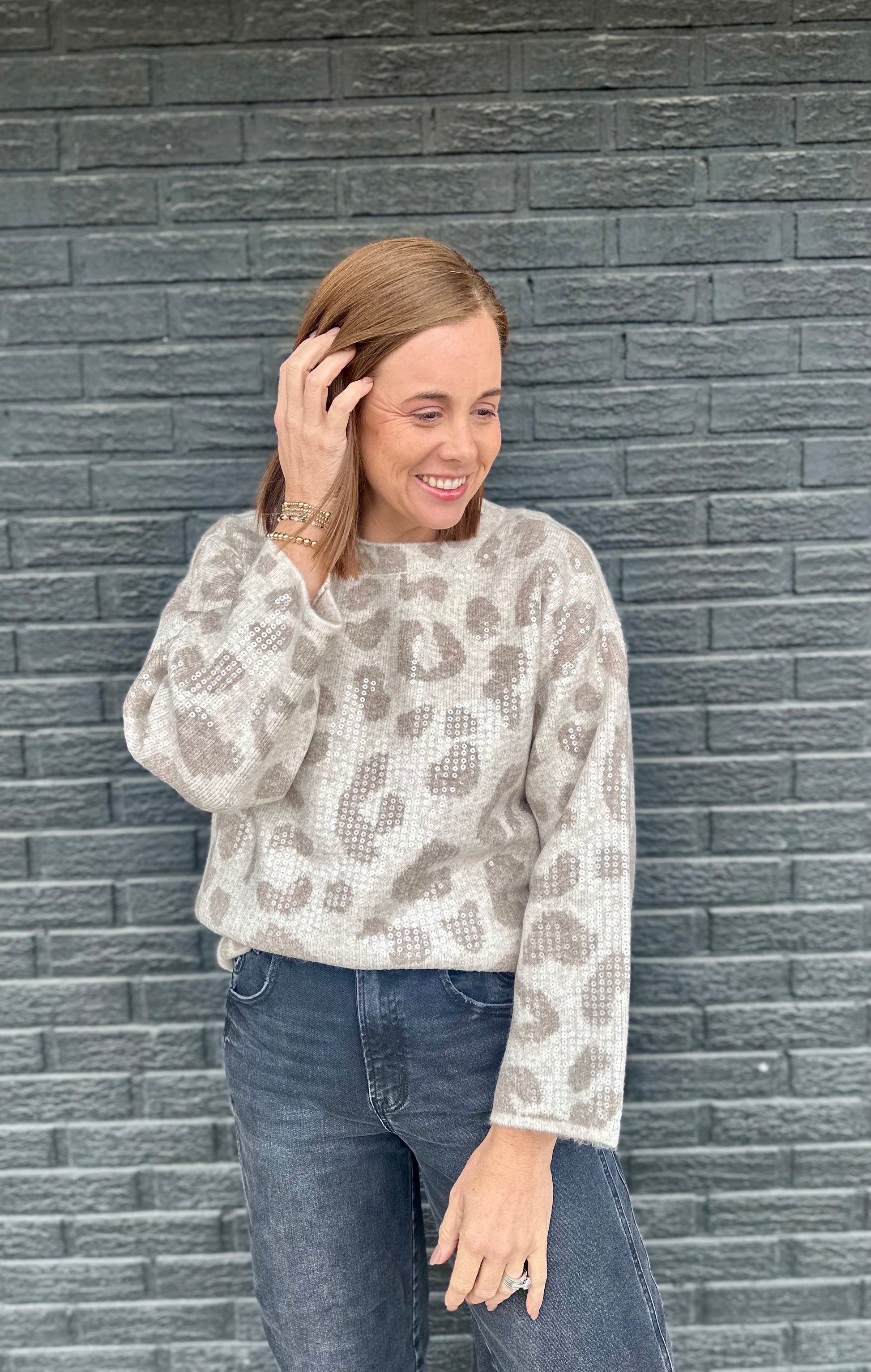 A little sparkle never hurt anyone! This sequin leopard sweater adds the perfect pop of glam to your neutral lineup. This is made for those who love to shine while keeping it classy.