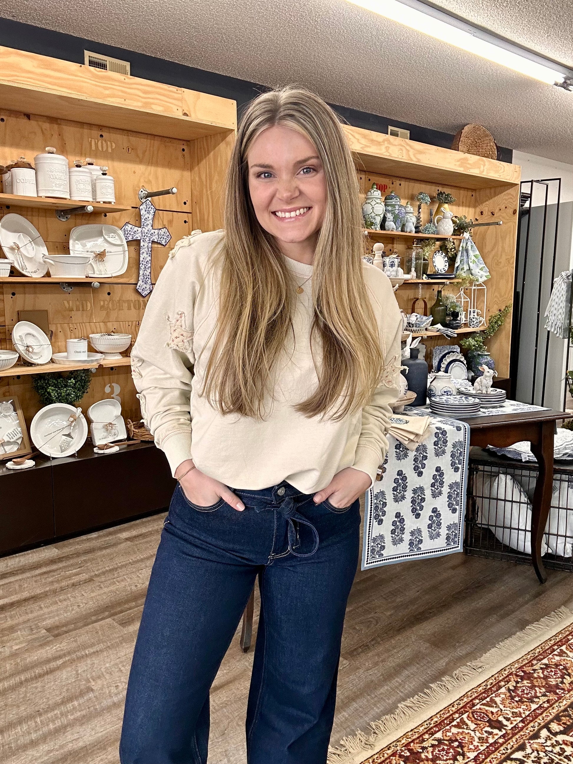 LONG SLEEVE STAR PATCH DETAIL TOP