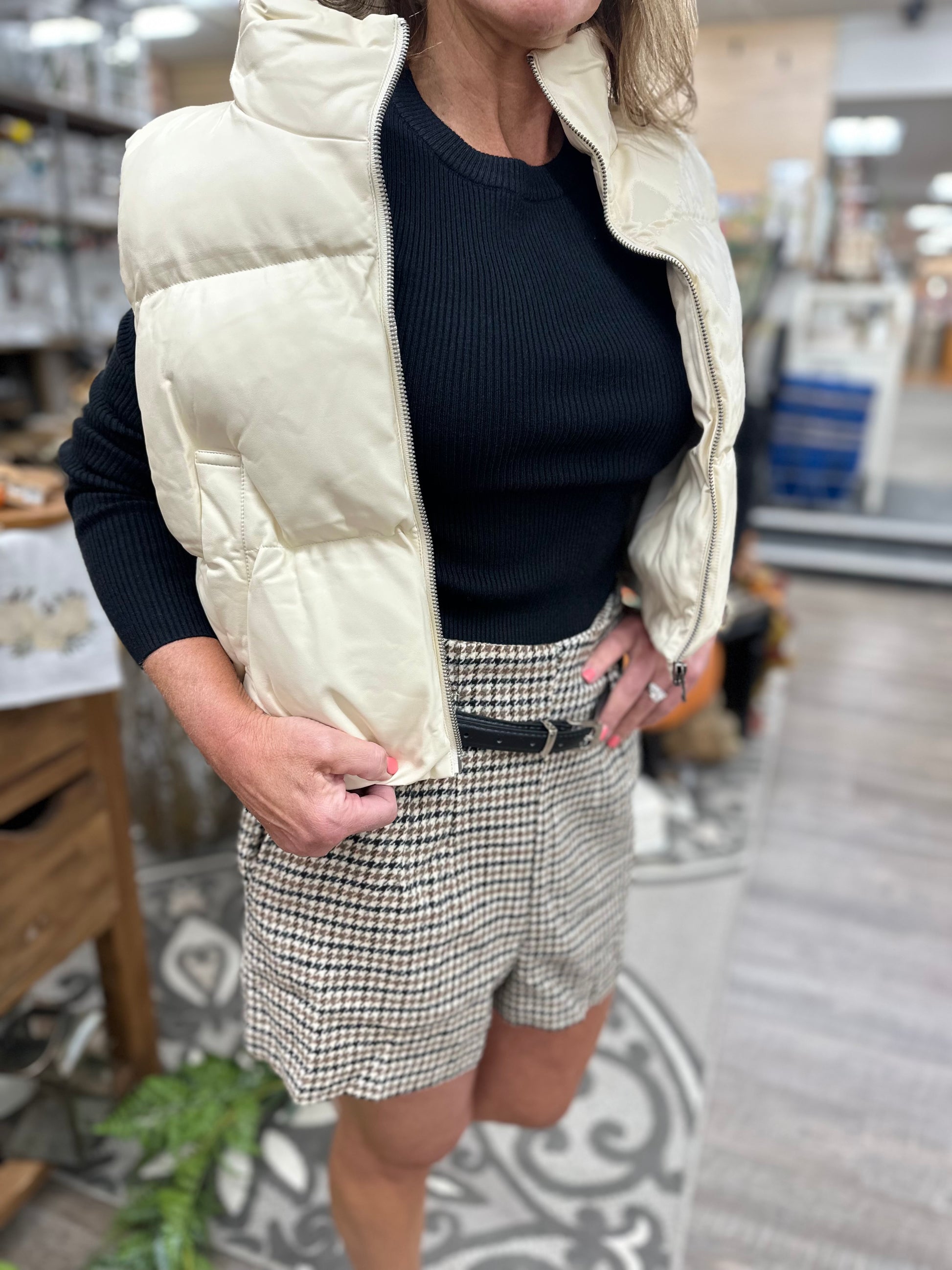 These shorts elevate any outfit. They are high waisted and come with a skinny belt.
