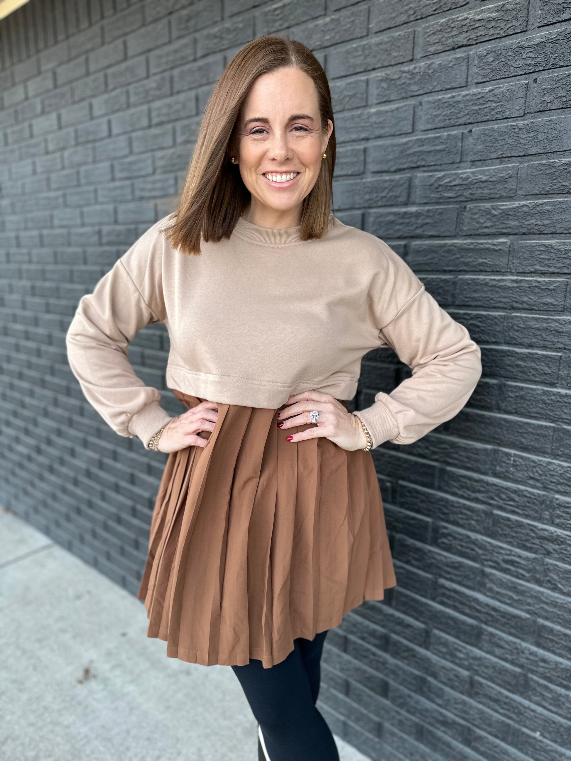 This transition piece dress is great moving into Spring! The pleat detail of the skirt of the dress is adorable. Pair it with tennis shoes for a casual look or with little booties for a dressier look.